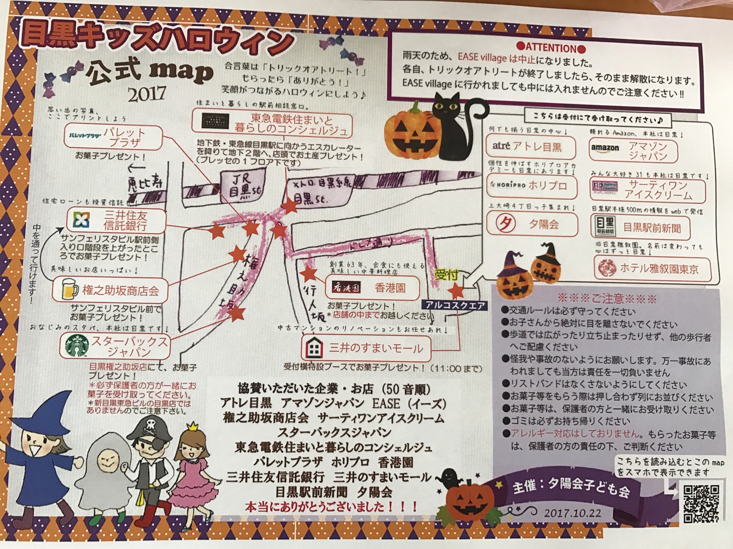 目黒キッズハロウィン公式map 2017 10/22 未分類 2017-10-212017-10-22 未分類 よかったらシェアしてね! URLをコピーしました! URLをコピーしました! 2回連続「雨天中止」になってしまった路地裏dining、次回の開催日程は…… 見逃せない!路地裏diningでおなじみEASEの真骨頂、Creator' Market開催。EASEスタッフがおすすめする「見どころ」は…… この記事を書いた人 ほん 目黒駅前新聞の生みの親。 関連記事 RUNしてMOCHI!初詣ランニングからの餅つきSHOWで、縁起も幸先もいい新年のスタートを切りませんか?<1/7> 2018-01-01 【aeru meguroイベント情報】8月も開催!日本の食事のマナーについて学べるイベント<8/27> 2017-08-04 【目黒さくら特集2017】目黒川の桜を存分に楽しめる2つのコースをご紹介! 2017-04-04 保護中: 目黒シネマ【スポット紹介】<後編>映画館がある街とない街って、ちょっと違うと思います 2017-03-14 <本日開催>イルミネーションを楽しみながら「City Pride Battle」の応援お願いします! 2016-12-20 【イベント情報】青森県弘前が『aeru meguro』にやってくる9日間!トークイベント&ねぷたのぬり絵も! 2016-07-06 保護中: 目黒シネマ【スポット紹介001】「映画館がある街とない街って、ちょっと違うと思います」<後編> 2016-05-20 保護中: 目黒シネマ【スポット紹介001】「映画館がある街とない街って、ちょっと違うと思います」<前編> 2016-05-20
